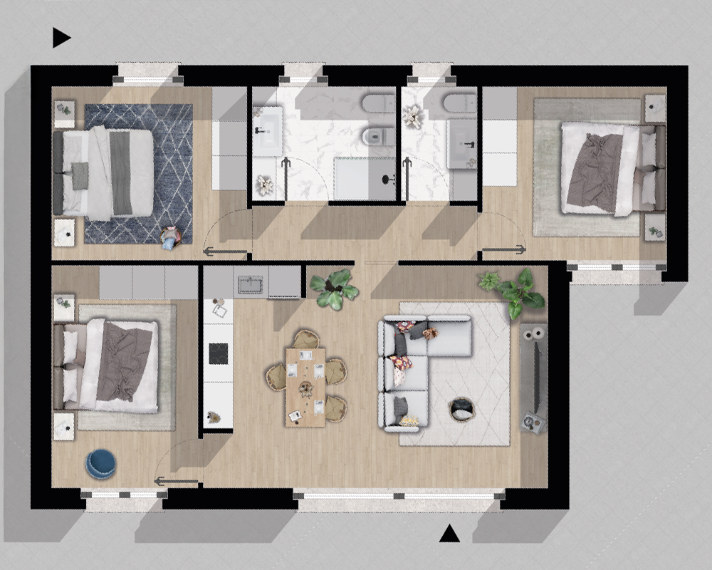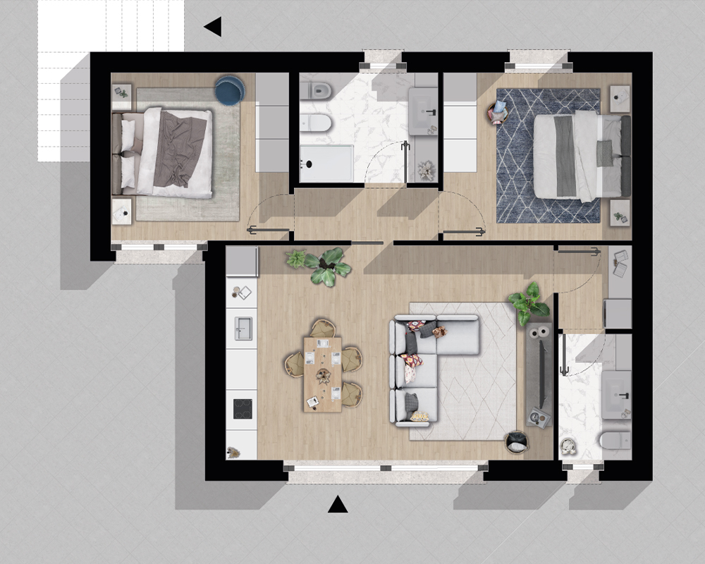 In Lake Iseo Retreat, lo spazio è un valore irrinunciabile. Il progetto offre esclusivamente soluzioni abitative di ampio respiro: generosi trilocali, pensati per accogliere famiglia e ospiti nel massimo comfort, e un esclusivo quadrilocale per chi desidera ancora più libertà. Ogni pianta è disegnata per garantire funzionalità ed eleganza, con zone giorno luminose che si aprono verso l’esterno, cancellando i confini tra l’architettura e il paesaggio.